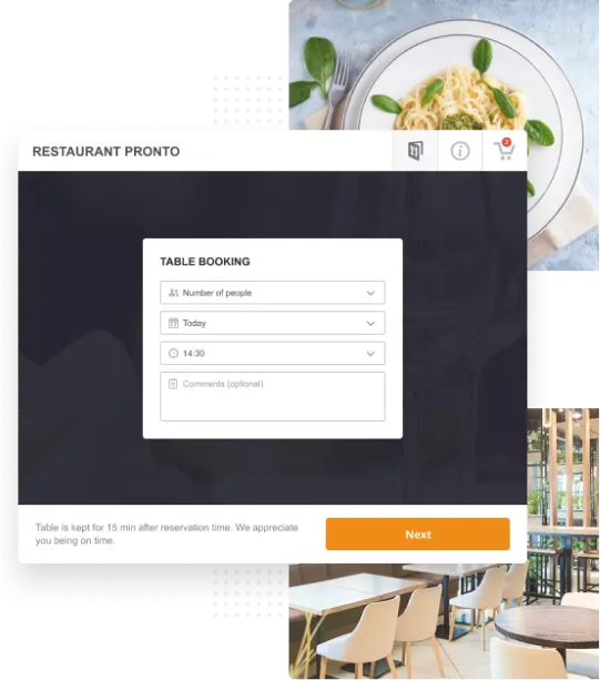 With our “Table Reservation” + “Order ahead” features, your hungry customers can easily book a table & pre-order their favorite dishes.